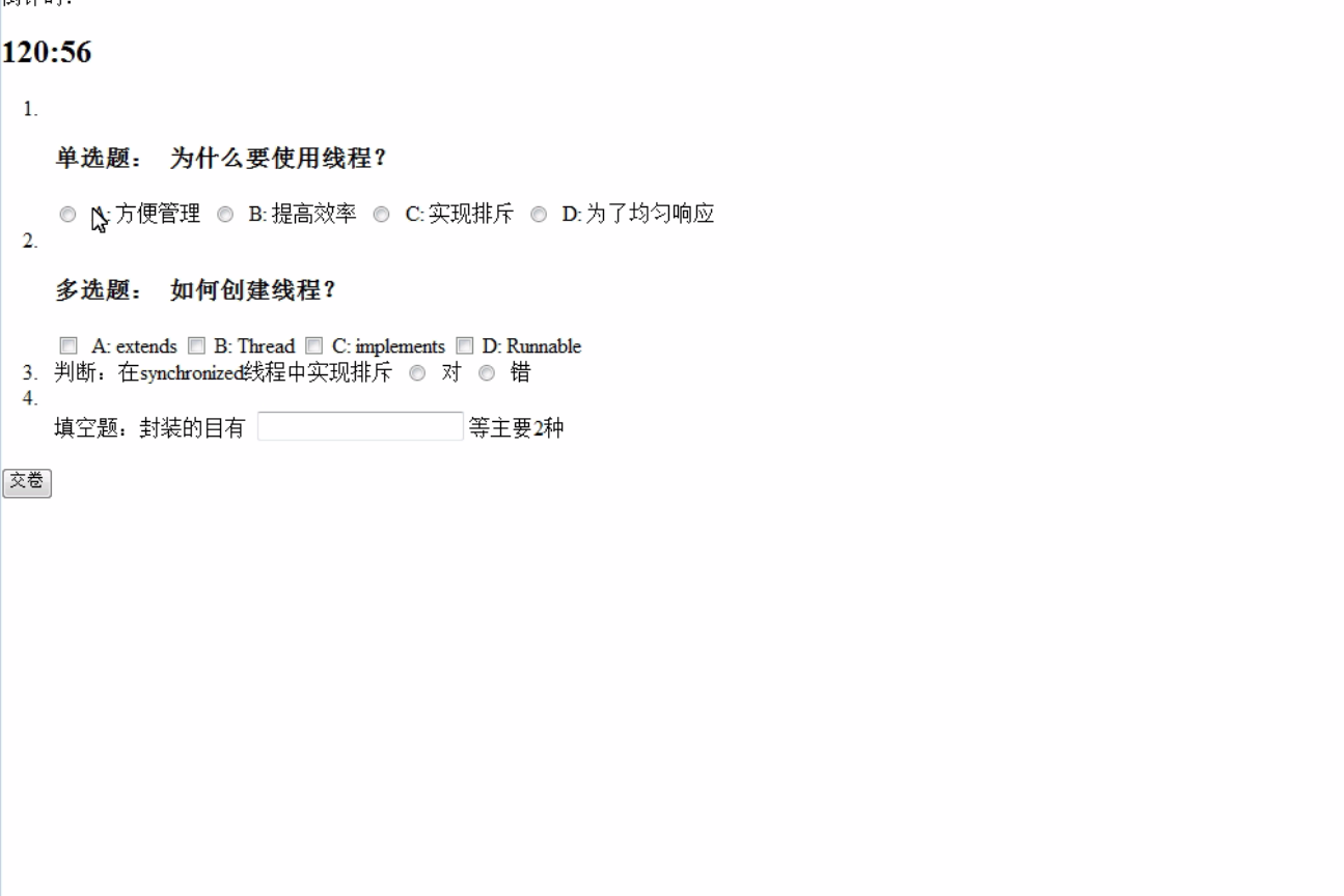 在线考试(servlet,mysql) 包含内容: 源码,数据库,论文 作者QQ1420527913 下载全套 详情描述 如遇视频不清晰,请最大化观看演示 官网:http://www.ckplayer.com,版本号:X 以下仅列出部分功能,全部功能请至官网 《手册》查看 播放 暂停 播放/暂停 静音 取消静音 清除视频(仅flashplayer) 获取元数据 添加元件 删除元件 添加弹幕 视频截图(需要视频权限) 播放器截图(需要视频权限) 暂停广告(仅flashplayer) 继续播放广告(仅flashplayer) 关闭(结束)广告(仅flashplayer) 显示控制栏 隐藏控制栏 默认角度 顺时针旋转 逆时针旋转 旋转90 旋转180 旋转270 旋转-90 旋转-180 旋转-270 默认大小 放大 缩小 默认速度(仅H5) 0.5倍(仅H5) 1倍(仅H5) 2倍(仅H5) 正常拖动 不能拖动 只能前进(向右拖动) 只能后退 能回到第一次拖动时的位置 看过的地方可以随意拖动 原始比例(仅flashplayer) 4:3(仅flashplayer) 16:9(仅flashplayer) 调整亮度(仅flashplayer) 恢复亮度(仅flashplayer) 调整对比度(仅flashplayer) 恢复对比度(仅flashplayer) 调整饱和度(仅flashplayer) 恢复饱和度(仅flashplayer) 调整色相(仅flashplayer) 恢复色相(仅flashplayer) 播放 播放 单独监听功能: 播放状态: 跳转状态:无 缓冲:100 当前音量:0.8 是否全屏:否 控制栏:显示 还未结束 当前播放时间(秒):0 前置广告状态: 鼠标位置 切换清晰度: 点击监听: 监听截图功能 Custom Tab